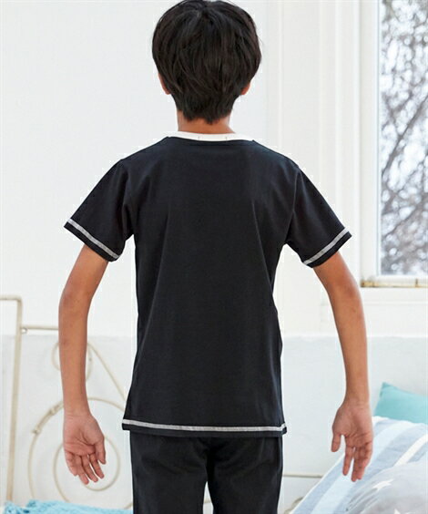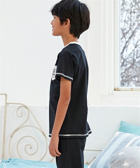 ナンバープリントポケット付き半袖パジャマ(男の子 子供服 ジュニア服) ニッセン nissen ネイビー ブラック カラー ネイビー/ブラック サイズ 100/110/120/130/140/150/160 備考 単位:cm ※サイズの誤差は多少発生します。